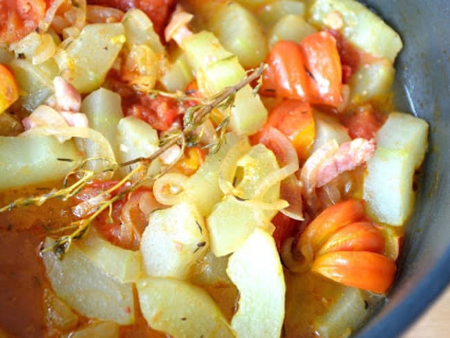 20 mai 2021 - Recette de concombre cuit lardons. Concombre aux lardons.